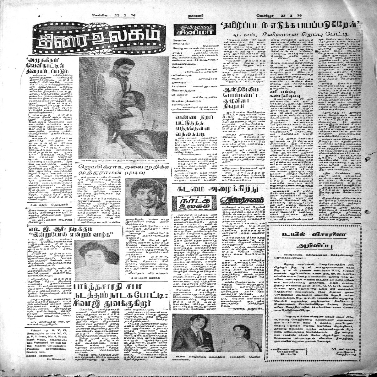 | 制作: | VDL スッバイヤV. DLSP ラクシャマナン |