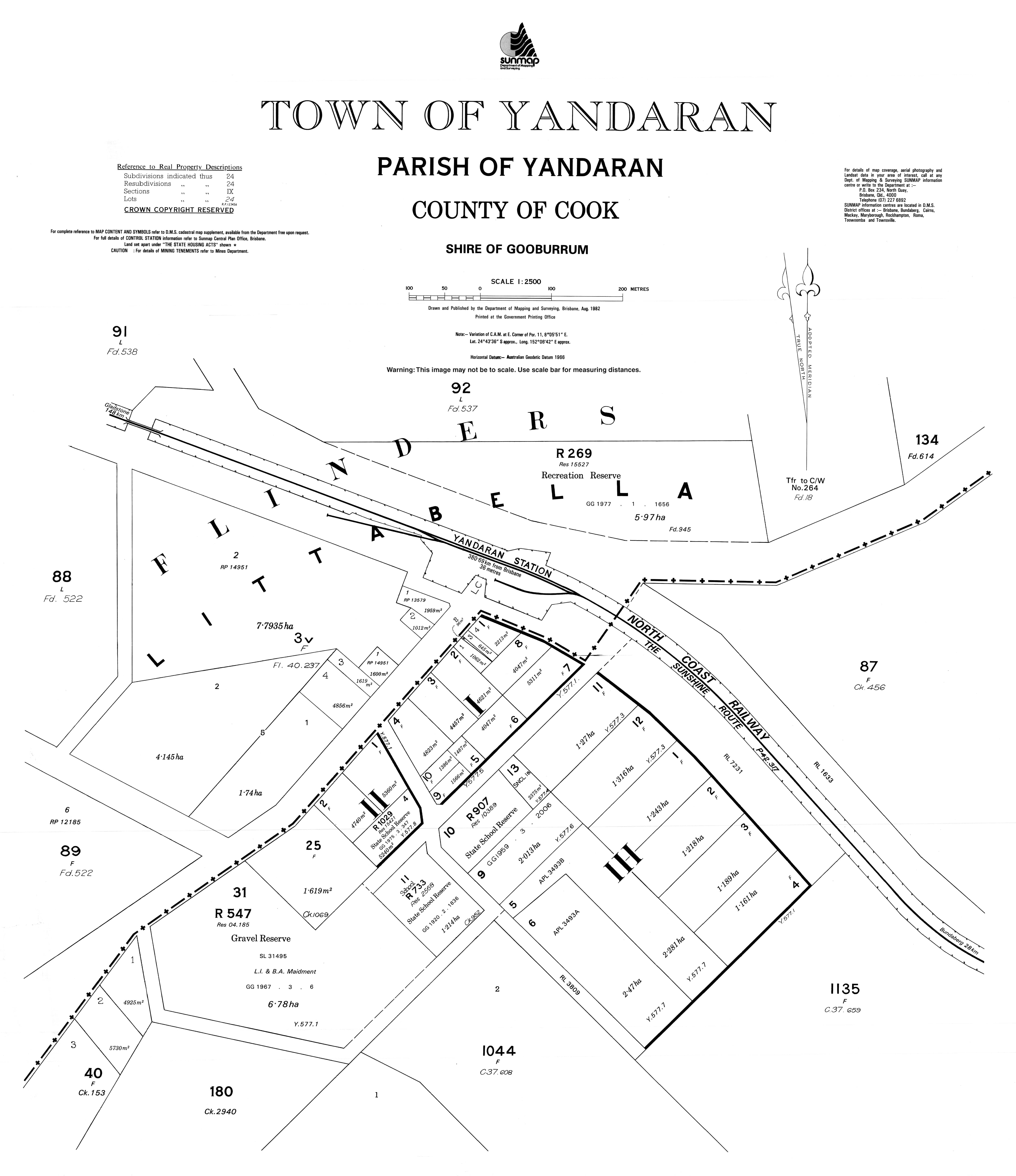 この地域は主に内陸部ですが、北東の境界は珊瑚海です。北海岸鉄道は東からこの地域を通り、町を通り過ぎて北へ出ています。町にはヤンダラン駅(南緯24.7208度、東経152.1135度)があり、[ 5 ]地域の北部にはリタベラ駅(北緯24.6849度、東経152.0781度)とタコカ駅があります。[ 6 ] [ 7 ]南緯24度43分15秒 東経152度06分49秒 / / -24.7208; 152.1135 (ヤンダラン駅)北緯24度41分06秒 東経152度04分41秒 / / 24.6849; 152.0781 (リタベラ駅)